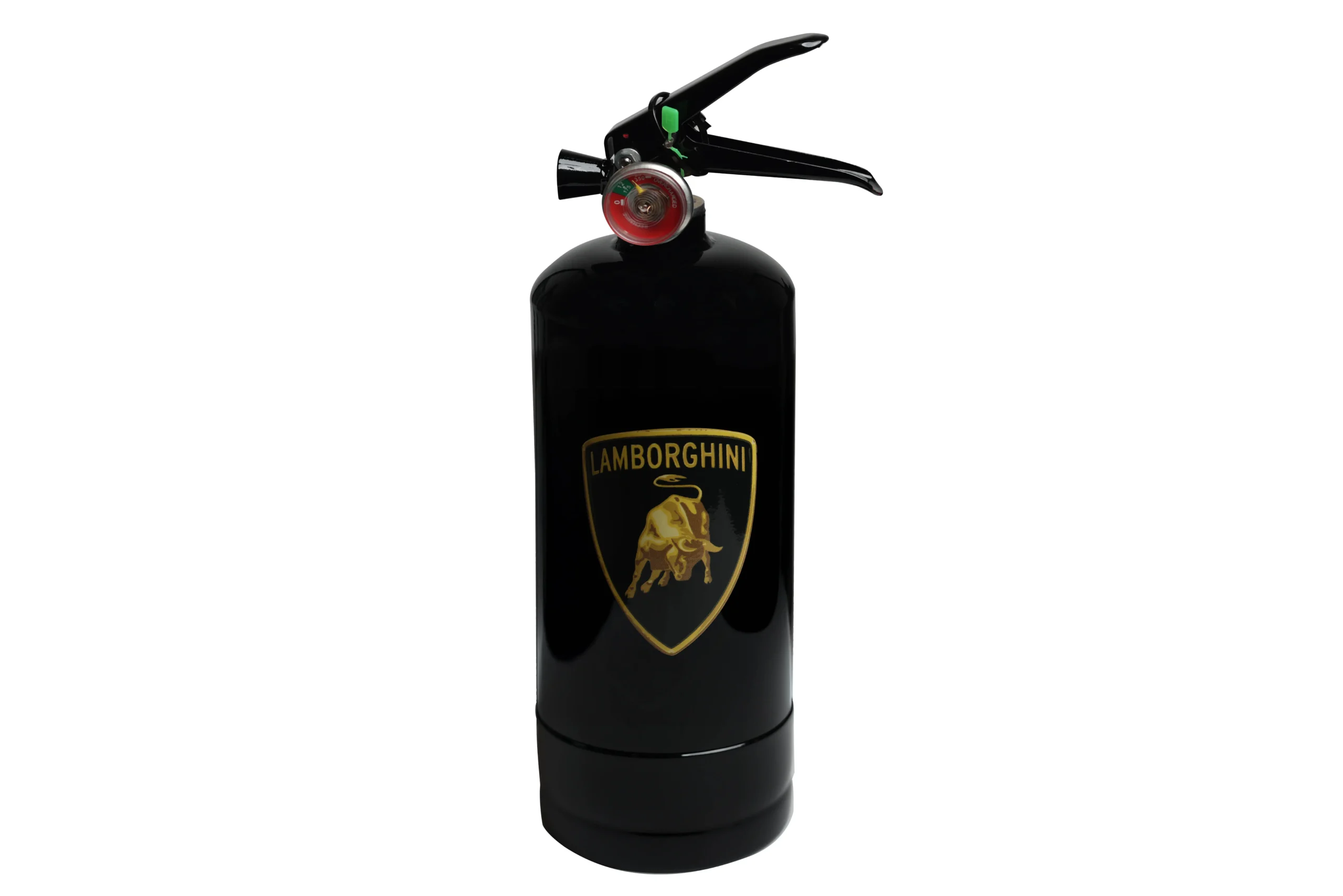 Finished glossy black with the Lamborghini logo, this mini extinguisher brings attitude to any room. A fierce conversation starter for collectors.