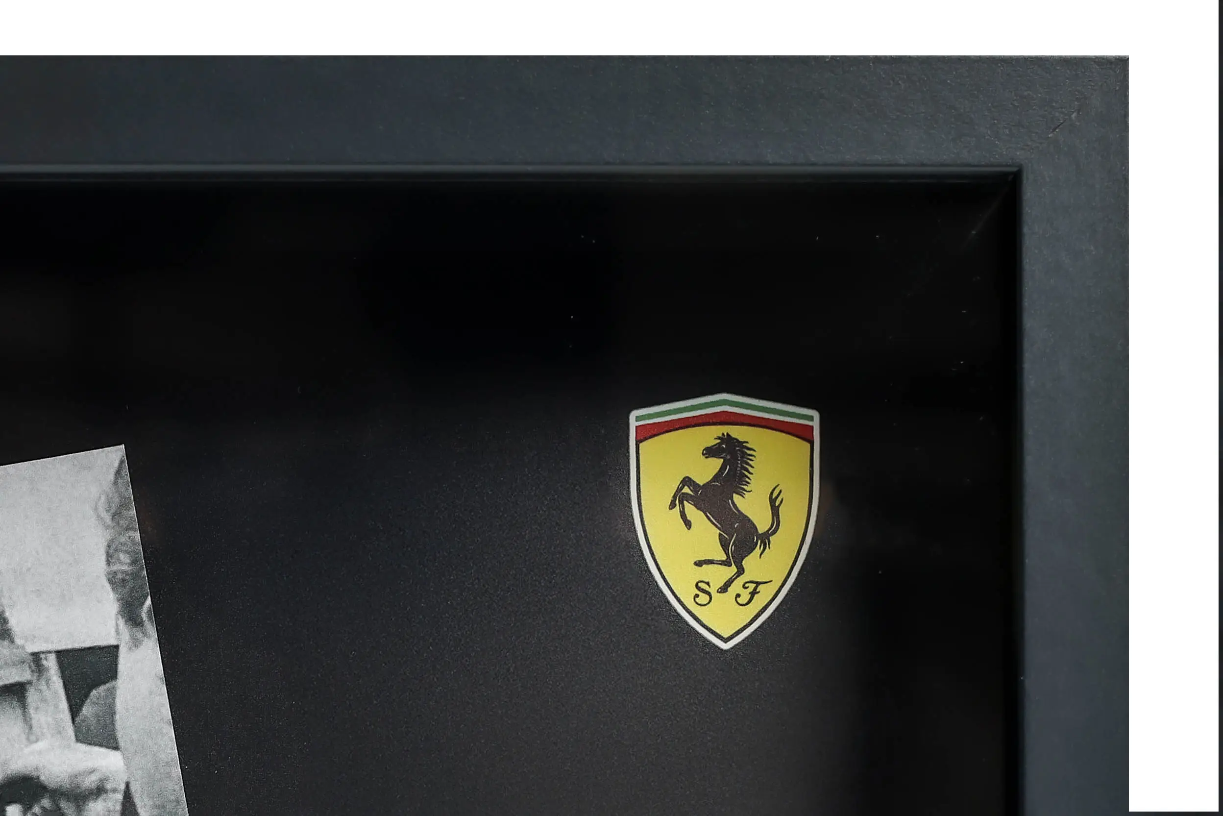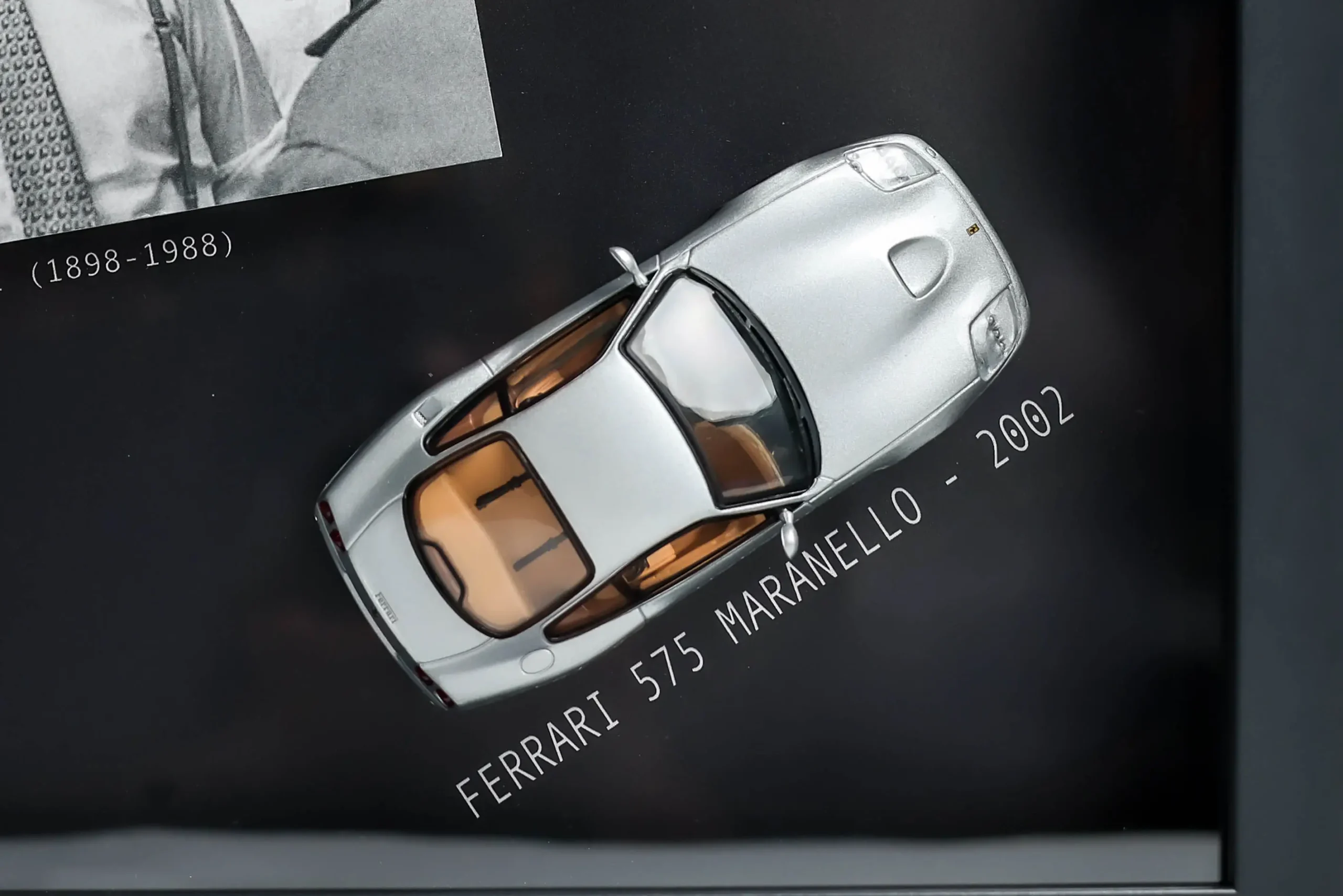 This frame features a finely detailed model of the 2002 Ferrari 575 Maranello. A perfect addition to any Ferrari legacy collection or desk display.