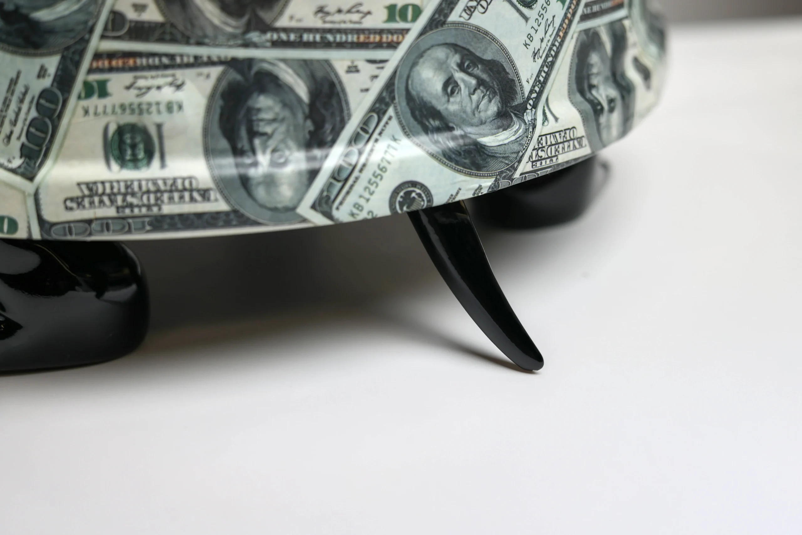 A glossy black turtle carrying a pile of dollar bills, blending symbols of wealth and longevity. This eye-catching piece adds a quirky yet powerful statement to your decor, perfect for spaces focused on success and prosperity.